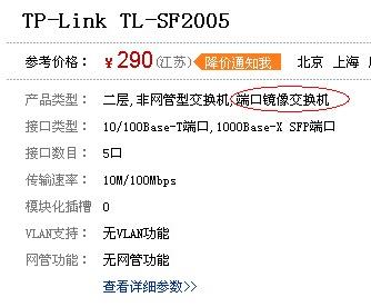 A 如果文檔介紹中聲稱此交換機支持“端口鏡像”或者“支持網(wǎng)管功能”,那么該交換機就可以支持端口鏡像。如: