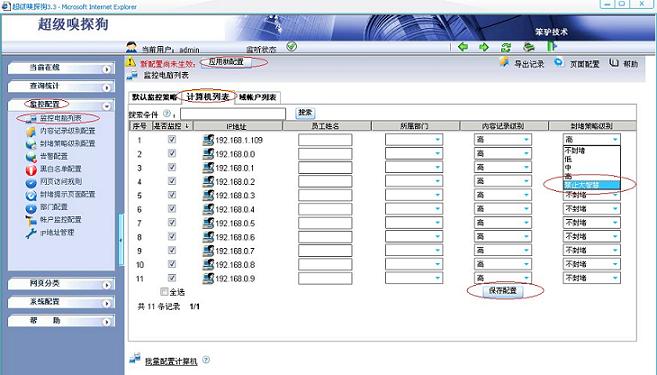 2. 在“監控配置-- >監控電腦列表-- >計算機列表”中應用封堵規則,如下圖所示: