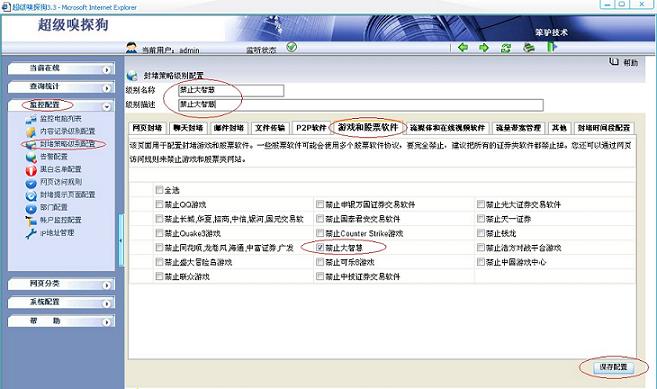 通過超級嗅探狗上網行為管理軟件禁止炒股軟件