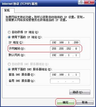 請(qǐng)注意:255.255.252.0只是針對(duì)192.168.1.0和192.168.2.0的網(wǎng)段,如果您是其他網(wǎng)段,子網(wǎng)掩碼還需要做相應(yīng)的修改。