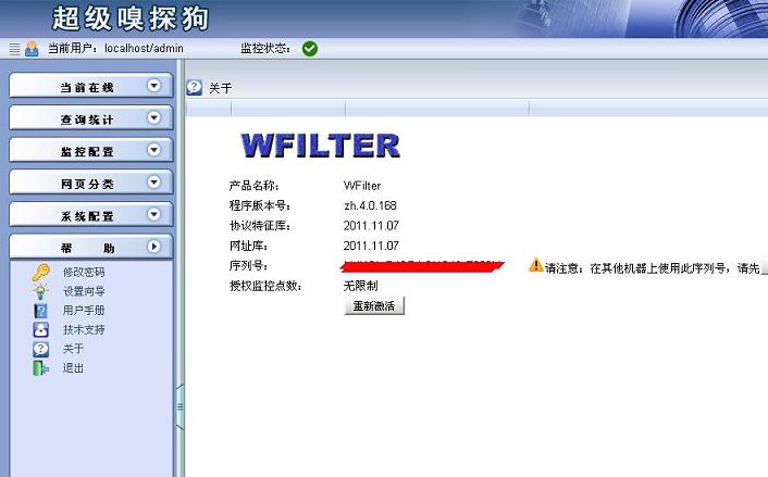 如果您選擇通過Internet來激活您的產(chǎn)品,當(dāng)您提交您在購買時獲得的注冊碼時,激活平臺將檢查您的Internet連接,然后連接到一個安全的服務(wù)器上,傳輸您的注冊碼給WFilter,WFilter將返回您的注冊結(jié)果,即而完成激活。
