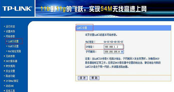 1.1 把無線路由的IP改為192.168.1.2(用一臺無線上網的電腦打開192.168.1.1進行設置)