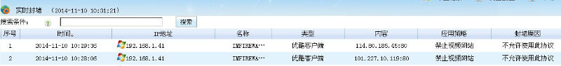 5.同時,您可以在超級嗅探狗的當前在線->實時封堵中,看到封堵信息。具體如下圖所示: