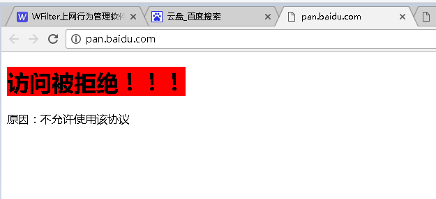 如圖中所示,訪問百度云盤等網盤時,會提示訪問被禁止。