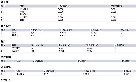 詳盡的協議統計報表,可以對各類局域網中使用過的P2P軟件、流媒體軟件、其他各類協議一目了然。