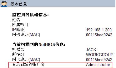 在“所有在線”頁面中,點擊監控電腦的姓名。如圖1.6所示,如果帳戶成功獲取, 在“基本信息”中出現“登錄到域的帳戶名”信息,否則沒有。