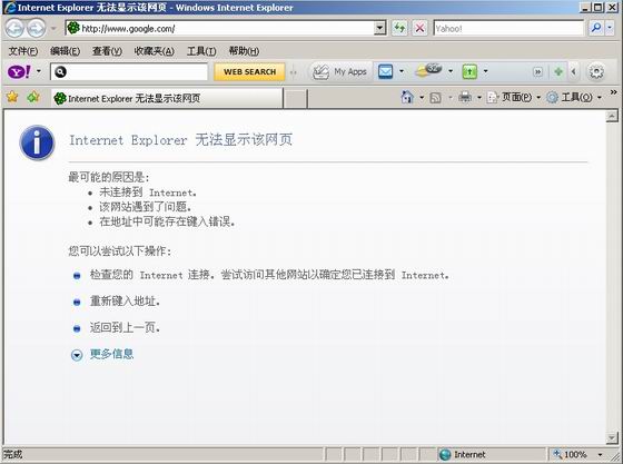 如果用戶自行修改了IP地址,打開瀏覽器時將無法瀏覽網頁: