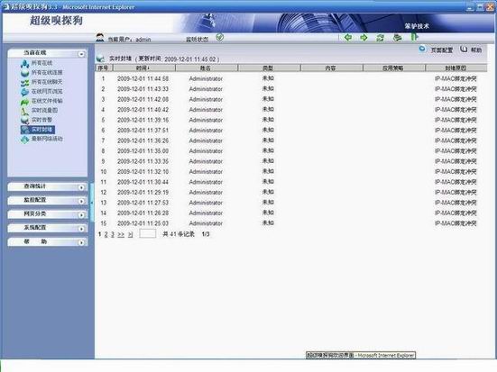 在超級嗅探狗的“實時封堵”頁面將看到一條封堵記錄: