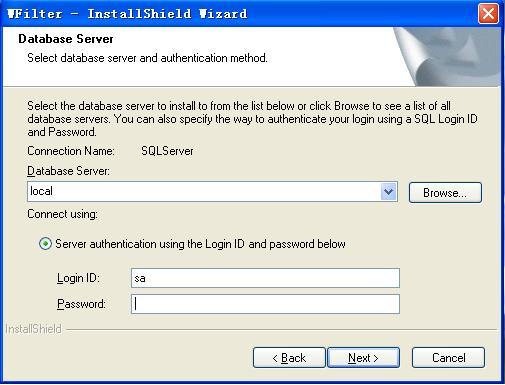 As in Figure 2.2, input database Login ID and password. (This database user shall have create database/table priviledge.)