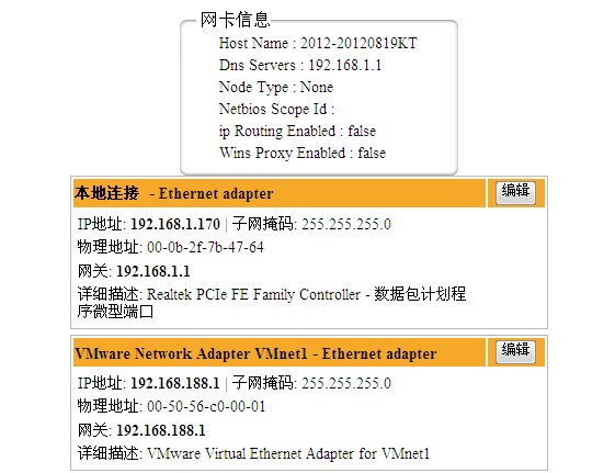 該插件可以用來修改IP、子網掩碼和網關等信息 |