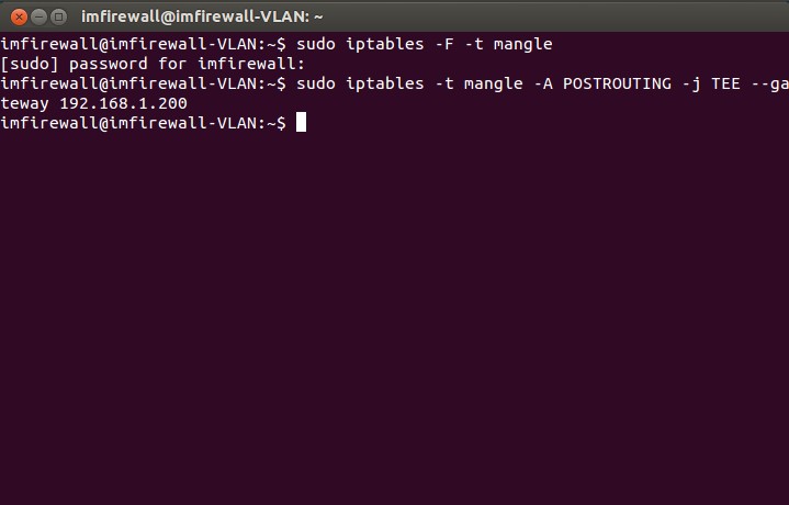sudo iptables -t mangle -A POSTROUTING -j TEE --gateway 192.168.1.200